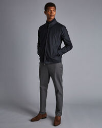 Form and function combine in our smart Harrington jacket. Its smooth fabric blends cotton and polyester in a breathable mix, offering moisture-wicking properties and superior durability. A half-quilted lining provides a little extra insulation. Pair yours with stone-coloured chinos and a Merino knit for an elevated casual look. Alternatively, wear it over your Travel Suit to stay warm when you're on the go.