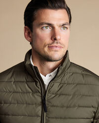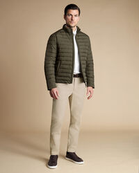 Lightweight Quilted Jacket - Olive Greenhttps://www.charlestyrwhitt.com/on/demandware.static/-/Sites-ctshirts-master/default/dw53cc1aaf/OUC0081OLV_MODEL_FRONT.jpgOUC0081OLVForget about unexpected showers ruining your plans – our latest jacket has your back with its water-resistant finish. The lightweight recycled wadding provides warmth without bulk, allowing you to explore the countryside or city streets without feeling weighed down. We’ve added a collar stand feature for extra insulation during the colder seasons. Plus, the convenient double-ended zipper makes layering hassle-free while out and about.https://www.charlestyrwhitt.com/eu/lightweight-quilted-jacket---olive-green/OUC0081OLV.htmlEUR199.00InStock41