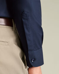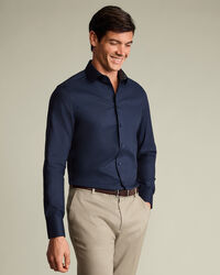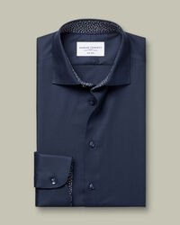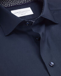 Non-Iron Stretch Floral Printed Trim Shirt – Navy https://www.charlestyrwhitt.com/on/demandware.static/-/Sites-ctshirts-master/default/dw82c0ecb5/SCS/SCS0096NAV/SCS0096NAV_COLLAR_DETAIL_01.jpg SCS0096NAV We've crafted our non-iron shirt from soft and comfortable pure cotton with a breathable weave. Its semi-cutaway collar comes with complimentary stays and can be worn with or without a tie. A split back yoke makes movement easy. For subtle contrast, we've added an eye-catching print inside the collar and cuffs. Wear yours with our ultimate chinos and classic brogues when it's time for a post-work dinner date. https://www.charlestyrwhitt.com/eu/non-iron-stretch-floral-printed-trim-shirt-%E2%80%93-navy/SCS0096NAV.html EUR 84.95 InStock 5 10