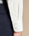 Non-Iron Twill Shirt - Ivory Whitehttps://www.charlestyrwhitt.com/on/demandware.static/-/Sites-ctshirts-master/default/dw4659500f/FON0409NWH_COLLAR_DETAIL.jpgFON0409NWHCrafted from soft and breathable cotton, this distinctive diagonal weave gives the fabric a subtle sheen and luxe drape, as well as making it hard-wearing. Our new ivory-white shade is softer than a true, pure white, for a warmer look that goes with every outfit combination you throw at it. The versatile classic collar can be styled for all dress codes, from an open-neck to smartened up with a tie. Complimentary brass collar stays ensure your collar stays crisp, and for ease of care (and a little extra sleep) we've added our non-iron finish.https://www.charlestyrwhitt.com/eu/non-iron-twill-shirt---ivory-white/FON0409NWH.htmlEUR29.95OutOfStock4.803733