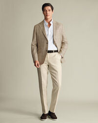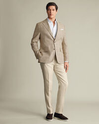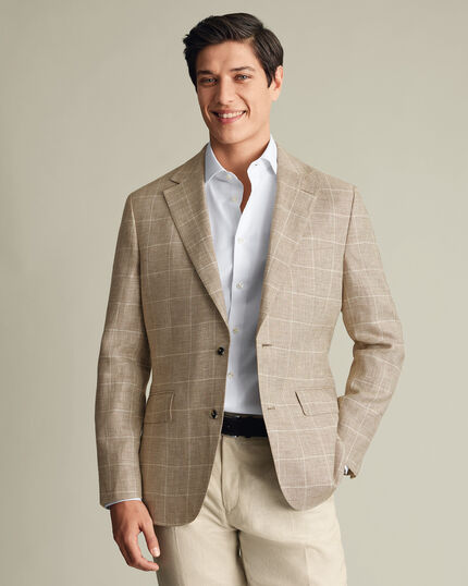 Pure Linen Check Jacket - Camel https://www.charlestyrwhitt.com/on/demandware.static/-/Sites-ctshirts-master/default/dw5c9a3c26/SUN/SUN0009CAM/SUN0009CAM_MODEL_FRONT_01.jpg SUN0009CAM Our lightweight, 100% linen suit is built for maximum breathability for a timeless summery look. The suit jacket is spun from pure linen with a lightweight shoulder and canvas, making it an ideal layer for milder weather. It's cut to a single-breasted silhouette with AMF stitching to keep the lapels and pockets neatly in place. https://www.charlestyrwhitt.com/eu/pure-linen-check-jacket---camel/SUN0009CAM.html EUR 369.00 InStock 0 0