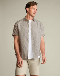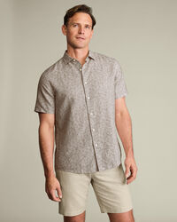 Short Sleeve Cotton Linen Leaf Print Shirt - Mocha https://www.charlestyrwhitt.com/on/demandware.static/-/Sites-ctshirts-master/default/dw1465f38e/CSM/CSM0030MCA/CSM0030MCA_MODEL_UNTUCKED_01.jpg CSM0030MCA These warm-weather essentials are woven from a breathable cotton-linen blend for a cooling feel. They come with a flattering fit and are adorned with a range of exclusive stripes and prints for an eye-catching look. Short sleeves and split back yoke contribute to the breezy feel, while button-down collars deliver a tidy finish. Wear yours with chino shorts and white smart trainers for a laid-back weekend look. https://www.charlestyrwhitt.com/eu/short-sleeve-cotton-linen-leaf-print-shirt---mocha/CSM0030MCA.html EUR 84.95 InStock 0 0