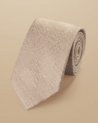 Silk Wool Blend Tie - Taupehttps://www.charlestyrwhitt.com/on/demandware.static/-/Sites-ctshirts-master/default/dwfa471518/hi-res/TIC2082TPE_ROLLED.jpgTIC2082TPEThese elegant silk-wool ties will make a suave finishing touch to formal ensembles. We’ve added some all-important details including a keeper loop to secure the tail end. There's also a hidden recovery loop that allows the fabric to move when knotted and can be pulled back into shape after wear.https://www.charlestyrwhitt.com/eu/silk-wool-blend-tie---taupe/TIC2082TPE.htmlEUR29.95OutOfStock00