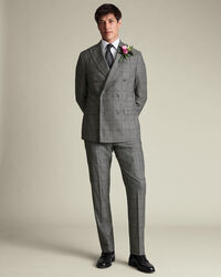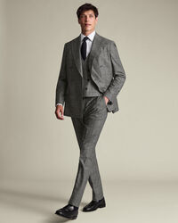 Ultimate Performance Check Waistcoat - Greyhttps://www.charlestyrwhitt.com/on/demandware.static/-/Sites-ctshirts-master/default/dw636dc31a/hi-res/SUT0328GRY_WAISTCOAT.jpgSUT0328GRYThe Super 120s Merino wool construction wins top marks for crease recovery, ensuring it stays sharp until the moment you take it off. Not only that – it also offers plenty of natural stretch. It's breathable, temperature-regulating and durable, too. The jacket is cut to a classic double-breasted silhouette, with a half-canvas construction for an impeccable fit. Plus, we’ve added working button cuffs so you can easily roll up the sleeves. Look closely, and you'll spot a pop of colour on the split melton undercollar. We’ve given the flat-fronted trousers a comfortable curved waistband.https://www.charlestyrwhitt.com/eu/ultimate-performance-check-waistcoat---grey/SUT0328GRY.htmlEUR54.95OutOfStock4.502