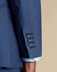 Ultimate Performance Sharkskin Suit Jacket - Indigo Bluehttps://www.charlestyrwhitt.com/on/demandware.static/-/Sites-ctshirts-master/default/dwbb963d58/SUW0026IDG_JACKET_FRONT.jpgSUW0026IDGOur sharkskin suit looks polished, even when you're on the move. Crafted from pure Super 120s wool with natural stretch, it's durable and crease-resistant – perfect for all-day wear. The jacket is cut to a classic single-breasted silhouette, with a half-canvas lining for an impeccable fit. Plus, we’ve added working button cuffs so you can easily roll up the sleeves. Look closely, and you'll spot a pop of colour on the split melton undercollar.