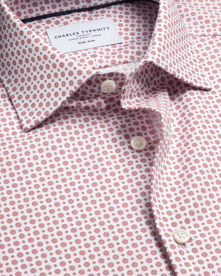 details about product: Chemise à imprimé géométrique extensible sans repassage - Blanc et rouge