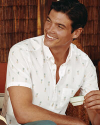 Chemise à motif ananas en popeline délavée extensible à manches courtes - Blanc 84,95 €
