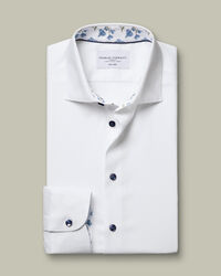 Chemise bordure à imprimé floral extensible sans repassage - Blanc https://www.charlestyrwhitt.com/on/demandware.static/-/Sites-ctshirts-master/default/dw6e90772c/SCS/SCS0110WHT/SCS0110WHT_COLLAR_DETAIL_01.jpg SCS0110WHT Cette chemise en sergé de coton à bordures imprimées mérite de figurer parmi les incontournables de votre garde-robe. Jetez un œil à l'intérieur du col et des poignets : vous y trouverez un élégant motif caché. Lors des occasions moins formelles, optez pour une allure décontractée en déboutonnant un ou deux boutons. https://www.charlestyrwhitt.com/fr/chemise-bordure-%C3%A0-imprim%C3%A9-floral-extensible-sans-repassage---blanc/SCS0110WHT.html EUR 84,95 InStock 5 1