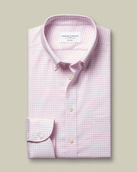 Chemise Oxford à carreaux extensible sans repassage à col boutonné - Rosehttps://www.charlestyrwhitt.com/on/demandware.static/-/Sites-ctshirts-master/default/dw5dbf9948/SCS/SCS0069PNK/SCS0069PNK_COLLAR_DETAIL_01.jpgSCS0069PNKNous avons modifié ce tissage plébiscité en y ajoutant une touche d'extensibilité et une finition sans repassage. Nous avons ainsi créé une chemise confortable qui vous accompagnera au bureau comme en week-end tout en restant infroissable. L'empiècement fendu au dos procure de la liberté de mouvement. Des détails tels que la poche poitrine et les poignets arrondis en font une pièce idéale en toutes circonstances. Nous avons aussi amélioré notre col boutonné qui reste en place élégamment et qui est fait pour durer plus longtemps.https://www.charlestyrwhitt.com/fr/chemise-oxford-%C3%A0-carreaux-extensible-sans-repassage-%C3%A0-col-boutonn%C3%A9---rose/SCS0069PNK.htmlEUR84,95InStock00