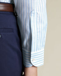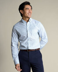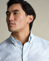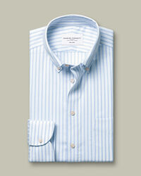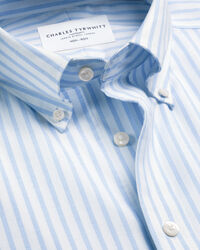 Chemise Oxford à rayures extensible sans repassage – Bleu cielhttps://www.charlestyrwhitt.com/on/demandware.static/-/Sites-ctshirts-master/default/dw4ec0f829/SCS/SCS0070SKY/SCS0070SKY_COLLAR_DETAIL_01.jpgSCS0070SKYNous avons modifié ce tissage plébiscité en y ajoutant une touche d'extensibilité et une finition sans repassage. Nous avons ainsi créé une chemise confortable qui vous accompagnera au bureau comme en week-end tout en restant infroissable. L'empiècement fendu au dos procure de la liberté de mouvement. Des détails tels que la poche poitrine et les poignets arrondis en font une pièce idéale en toutes circonstances. Nous avons aussi amélioré notre col boutonné qui reste en place élégamment et qui est fait pour durer plus longtemps.https://www.charlestyrwhitt.com/fr/chemise-oxford-%C3%A0-rayures-extensible-sans-repassage-%E2%80%93-bleu-ciel/SCS0070SKY.htmlEUR84,95InStock00