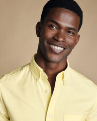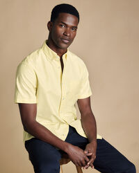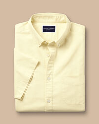 Chemise Oxford délavée extensible à manches courtes et col boutonné - Citronhttps://www.charlestyrwhitt.com/on/demandware.static/-/Sites-ctshirts-master/default/dwa5412169/hi-res/CSR2109LMN_MODEL_UNTUCKED.jpgCSR2109LMNElle est confectionnée en 100 % coton de qualité supérieure, qui a été brossé pour offrir une douceur exceptionnelle – et délavé pour rehausser encore la sensation.. La finition, ainsi que l’empiècement fendu au dos et la coupe ajoutent au confort de la chemise.