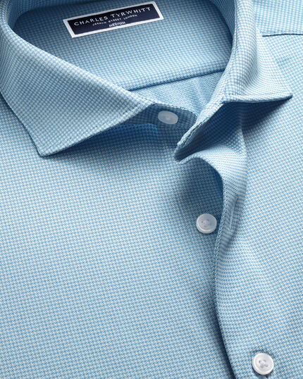 Chemise Performance en jersey - Bleu clairhttps://www.charlestyrwhitt.com/on/demandware.static/-/Sites-ctshirts-master/default/dw5339640c/JEH/JEH0003LBU/JEH0003LBU_COLLAR_DETAIL_01.jpgJEH0003LBUCette chemise extensible haute performance est fabriquée à partir d'un tissu mélangé qui évacue l'humidité – pour vous garder au frais, au sec et à l'aise toute la journée. Dotée de fibres extensibles supplémentaires, elle offre une liberté de mouvement remarquable tout en conservant sa silhouette élégante. Le tissu texturé apporte une note subtile de distinction, tandis que le col italien, les poignets boutonnés et la patte de boutonnage pleine longueur assurent un style élégant et professionnel.https://www.charlestyrwhitt.com/fr/chemise-performance-en-jersey---bleu-clair/JEH0003LBU.htmlEUR84,95InStock51