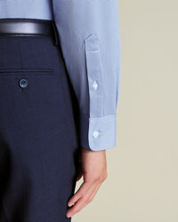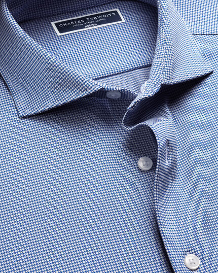 Chemise Performance en jersey - Bleu royal et blanchttps://www.charlestyrwhitt.com/on/demandware.static/-/Sites-ctshirts-master/default/dwdf491c37/JEH/JEH0003RYL/JEH0003RYL_COLLAR_DETAIL_01.jpgJEH0003RYLCette chemise extensible haute performance est fabriquée à partir d'un tissu mélangé qui évacue l'humidité – pour vous garder au frais, au sec et à l'aise toute la journée. Dotée de fibres extensibles supplémentaires, elle offre une liberté de mouvement remarquable tout en conservant sa silhouette élégante. Le tissu texturé apporte une note subtile de distinction, tandis que le col italien, les poignets boutonnés et la patte de boutonnage pleine longueur assurent un style élégant et professionnel.https://www.charlestyrwhitt.com/fr/chemise-performance-en-jersey---bleu-royal-et-blanc/JEH0003RYL.htmlEUR84,95InStock51