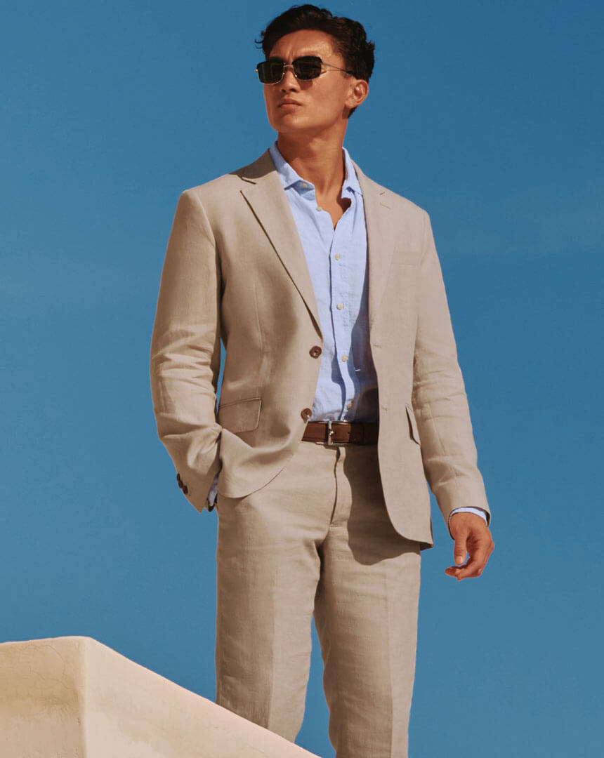 Un costume en lin a toujours fière allure, pour un rendez-vous client aussi bien qu'un mariage. Notre veste en lin et notre pantalon en lin élégants peuvent ainsi être portés ensemble ou séparément pour des possibilités de tenues infinies.