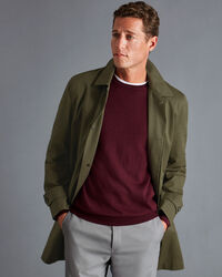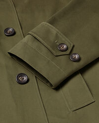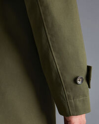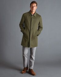 Imperméable Classique En Coton - Vert Olivehttps://www.charlestyrwhitt.com/on/demandware.static/-/Sites-ctshirts-master/default/dwc4c815be/hi-res/OUR0027OLV_MODEL_FRONT.jpgOUR0027OLVLorsque la météo n'est pas dans votre camp, optez pour notre imperméable classique. Ce modèle droit est confectionné en coton lisse et possède une finition résistante à l’eau qui se défroisse rapidement pour vous permettre de garder une allure élégante. Les œillets brodés sous les aisselles apportent une ventilation supplémentaire, tandis que la fente arrière et les épaules souples assurent une coupe confortable. Cet imperméable est un choix sûr, indépendamment de ce que vous réserve la journée. Portez-le au-dessus d’un costume ou d’une tenue plus décontractée.https://www.charlestyrwhitt.com/fr/imperm%C3%A9able-classique-en-coton---vert-olive/OUR0027OLV.htmlEUR169,00OutOfStock4,8011