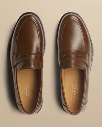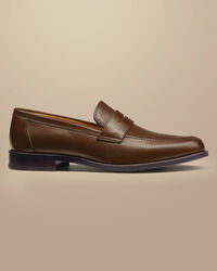 Mocassins En Cuir - Beige foncéhttps://www.charlestyrwhitt.com/on/demandware.static/-/Sites-ctshirts-master/default/dw44216a99/hi-res/SHC0245CBR_SIDE.jpgSHC0245CBRDoté de semelles entièrement conçues en cuir pour une finition élégante, ce modèle intemporel et polyvalent se porte tout au long de l'année. Nos mocassins sont confectionnés avec les meilleurs cuirs de veau et daims européens, afin d'assurer leur longévité. Leur semelle intérieure en cuir doublée de mousse garantit votre confort durant ces longues journées passées debout. Et ils s'ôtent en quelques secondes lorsqu'il est temps de prendre du repos. Pour améliorer leur durabilité et leur adhérence, nous avons aussi ajouté un talon en caoutchouc robuste.https://www.charlestyrwhitt.com/fr/mocassins-en-cuir---beige-fonc%C3%A9/SHC0245CBR.htmlEUR99,95InStock4,7028
