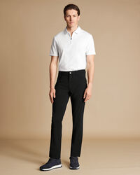 Pantalon à 5 poches Performance - Noirhttps://www.charlestyrwhitt.com/on/demandware.static/-/Sites-ctshirts-master/default/dwd77cf514/hi-res/TRJ0040BLK_MODEL_FULL_FRONT.jpgTRJ0040BLKCe pantalon à 5 poches est extensible dans les quatre sens, ce qui vous donne une grande liberté pour vos activités d'extérieur. De plus, leur tissu résistant à l'eau vous permet de rester au sec en cas d'averse inattendue. Besoin de ranger vos essentiels ? Nous avons également ajouté cinq poches pratiques. Ce modèle est aussi une option décontractée pour aller au bureau, grâce à sa coupe slim flatteuse et sa finition infroissable. Associez-le simplement à un polo casual, et vous serez prêt pour la journée.https://www.charlestyrwhitt.com/fr/pantalon-%C3%A0-5-poches-performance---noir/TRJ0040BLK.htmlEUR59,95InStock54