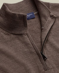 Pull à col zippé en pur mérinos – Mokahttps://www.charlestyrwhitt.com/on/demandware.static/-/Sites-ctshirts-master/default/dw34e20f60/KNM/KNM0015MCA/KNM0015MCA_MODEL_FRONT_01.jpgKNM0015MCACe modèle à la fois raffiné et décontracté, doté d’un col à fermeture éclair, est confectionné en pure laine mérinos certifiée Woolmark. La laine mérinos est réputée pour être une matière naturelle et performante : elle est confortablement respirante, thermorégulatrice et possède la finition la plus douce parmi les différents types de laine. Nous l'avons soigneusement lavée pour obtenir une finition encore plus soyeuse, et ainsi créer un pull souple qui s'adapte subtilement à votre silhouette. Le style est simple, laissant les fibres fines occuper le devant de la scène. Ses poignets et son ourlet côtelés traditionnels, ainsi que son encolure sobre subliment ce pull lorsqu'il est porté avec une chemise boutonnée.https://www.charlestyrwhitt.com/fr/pull-%C3%A0-col-zipp%C3%A9-en-pur-m%C3%A9rinos-%E2%80%93-moka/KNM0015MCA.htmlEUR99,95InStock00