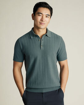 Cotton Textured Knitted Polo - Teal https://www.charlestyrwhitt.com/on/demandware.static/-/Sites-ctshirts-master/default/dw6dfba1b0/hi-res/KNITWEAR/CT/KNT0006TEL_MODEL_FRONT.jpg KNT0006TEL It’s crafted from naturally bio-degradable mid-weight cotton, so it’s ideal for wearing season after season. Look closely and you’ll spot a subtle striped pattern through the fabric. This style is cut with a timeless button neck and finished with a ribbed hem and cuffs so it locks in warmth. Pair with our classic, ultimate chinos and lace-up brogues for evening pub drinks with friends. https://www.charlestyrwhitt.com/intl/cotton-textured-knitted-polo---teal/KNT0006TEL.html GBP 39.95 InStock 5 2