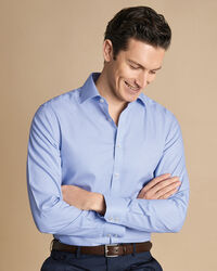 Cutaway Collar Non-Iron Stretch Kensington Weave Shirt - Cobalt Bluehttps://www.charlestyrwhitt.com/on/demandware.static/-/Sites-ctshirts-master/default/dw2a1585aa/hi-res/FON2620COB_COLLAR_DETAIL.jpgFON2620COBIt's crafted from airy pure cotton and the dobby weave has a unique, subtle texture. The weave has plenty of natural stretch, guaranteeing comfort, however long your days. The shirt is also mid-weight, meaning it's the master of all seasons. Of course, we've applied our legendary non-iron finish to make your mornings easier. A cutaway collar gives it a modern feel and details like subtle navy piping at the back complete the look.https://www.charlestyrwhitt.com/intl/cutaway-collar-non-iron-stretch-kensington-weave-shirt---cobalt-blue/FON2620COB.htmlGBP29.95OutOfStock4.70201