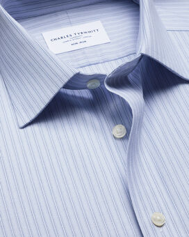 Cutaway Collar Non-Iron Twill Stripe Shirt – Bluehttps://www.charlestyrwhitt.com/on/demandware.static/-/Sites-ctshirts-master/default/dwf051dda7/FON/FON2665MBU/FON2665MBU_COLLAR_DETAIL_01.jpgFON2665MBUWith its distinctive diagonal textured weave and smooth, silky finish that feels supremely comfortable against the skin, it's no shock that this is our most popular weave. The convenient non-iron finish might have something to do with it, too. We crafted the mid-weight fabric from 100% cotton yarn, resulting in a durable and naturally breathable fabric that's versatile for year-round wear.https://www.charlestyrwhitt.com/intl/cutaway-collar-non-iron-twill-stripe-shirt-%E2%80%93-blue/FON2665MBU.htmlGBP69.95InStock00