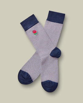 England Rugby Stripe Socks - Pink & Navy https://www.charlestyrwhitt.com/on/demandware.static/-/Sites-ctshirts-master/default/dw30810e49/ACQ/ACQ0017PNV/ACQ0017PNV_FULL_01.jpg ACQ0017PNV These sumptuously soft pairs are crafted with a fine, superior cotton blend. The result is breathable pairs that'll keep your feet fresh all day long. To ensure every step you take is a comfortable one, we made them with seamless toes and reinforced heels. https://www.charlestyrwhitt.com/intl/england-rugby-stripe-socks---pink-%26-navy/ACQ0017PNV.html GBP 12.95 InStock 0 0
