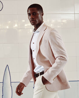 Linen Cotton Jacket - Peachhttps://www.charlestyrwhitt.com/on/demandware.static/-/Sites-ctshirts-master/default/dwa576c9df/hi-res/SES0006PCH_LIFESTYLE.jpgSES0006PCHThe natural fibres of this linen-cotton jacket lend it a relaxed look, as do the lack of shoulder pads and the lighter chest canvas. It's a smart-casual staple with a double - vented back hem for easy movement. . The notch lapels and four kissing cuff buttons are sharp details, and internally, there's a lower pocket as well as two breast ones.https://www.charlestyrwhitt.com/intl/linen-cotton-jacket---peach/SES0006PCH.htmlGBP229.00InStock00