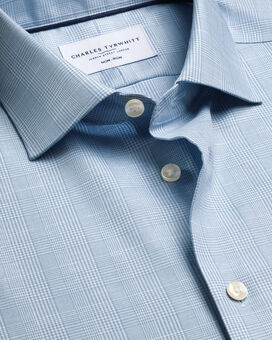 Non-Iron Cotton Linen Prince of Wales Shirt - Mid Bluehttps://www.charlestyrwhitt.com/on/demandware.static/-/Sites-ctshirts-master/default/dw47f4607d/SCS/SCS0101MBU/SCS0101MBU_COLLAR_DETAIL_01.jpgSCS0101MBUCrafted from a breathable cotton-linen twill blend, this shirt delivers comfort with structure in equal measure. A clever non-iron finish means you can wash, hang, and wear without the hassle of ironing. The mid-weight construction ensures it works year-round. Smart tailoring details include a semi-cutaway collar, split back yoke for easy movement, and complementary brass collar stays.https://www.charlestyrwhitt.com/intl/non-iron-cotton-linen-prince-of-wales-shirt---mid-blue/SCS0101MBU.htmlGBP69.95InStock00