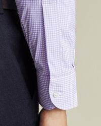 Non-Iron Performance Twill Check Shirt - Lilachttps://www.charlestyrwhitt.com/on/demandware.static/-/Sites-ctshirts-master/default/dwc99ca82c/hi-res/FOB0815LLC_COLLAR_DETAIL.jpgFOB0815LLCWe've used more sustainable yarns, including 41% GRS-certified recycled nylon, to create this cotton-rich blend. You'll notice the exceptional quality of the twill weave, with its smooth handfeel, and appreciate the movement of added stretch and a split back yoke. The lightweight and breathable fabric is ready to make warm days comfortable, thanks to naturally moisture-wicking properties. For a relaxed feel, we've opted for single-button, rounded cuffs and a semi-cutaway collar with lightweight interlining, plus our non-iron finish (of course).https://www.charlestyrwhitt.com/intl/non-iron-performance-twill-check-shirt---lilac/FOB0815LLC.htmlGBP29.95InStock4.407