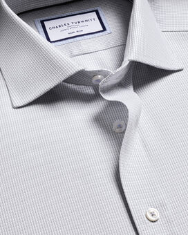 Non-Iron Stretch Burlington Weave Shirt - Silver Grey https://www.charlestyrwhitt.com/on/demandware.static/-/Sites-ctshirts-master/default/dwbd37fc0e/hi-res/FOA0009SLV_COLLAR_DETAIL.jpg FOA0009SLV This shirt is infused with natural stretch and a split back yoke, so you can move freely during those long office days. Its mid-weight cotton fabric makes it a perfect choice for year-round wear. We’re all about the details. Check out the navy back neck piping and tonal buttons. We’ve also included complimentary brass stays to keep your collar firmly in place. Plus, you can take your pick from eight vibrant colourways. https://www.charlestyrwhitt.com/intl/non-iron-stretch-burlington-weave-shirt---silver-grey/FOA0009SLV.html GBP 74.95 InStock 4.90 23