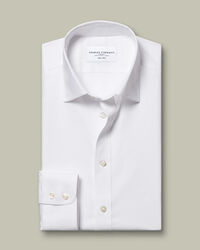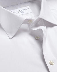 Non-Iron Stretch Poplin Shirt - White https://www.charlestyrwhitt.com/on/demandware.static/-/Sites-ctshirts-master/default/dw370ba6b5/hi-res/FON0216WHT_COLLAR_DETAIL_01.jpg FON0216WHT Woven to a close criss-cross pattern that creates natural stretch, poplin has a smooth finish, topped off with non-iron tech. Simply wash, hang, and wear your shirt, and stay impeccably crease-free all day. In crisp, clean white, this smart shirt complements all of your tailoring and ties. Plus, it comes complete with brass collar stays to ensure the classic collar holds its shape. https://www.charlestyrwhitt.com/intl/non-iron-stretch-poplin-shirt---white/FON0216WHT.html GBP 69.95 InStock 4.70 590