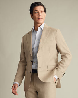 Pure Linen Jacket – Taupehttps://www.charlestyrwhitt.com/on/demandware.static/-/Sites-ctshirts-master/default/dw7a9cf602/SUN/SUN0009TPE/SUN0009TPE_JACKET_FRONT_01.jpgSUN0009TPEOur lightweight, 100% linen suit is built for maximum breathability for a timeless summery look. The suit jacket is spun from pure linen with a lightweight shoulder and canvas, making it an ideal layer for milder weather. It's cut to a single-breasted silhouette with AMF stitching to keep the lapels and pockets neatly in place.https://www.charlestyrwhitt.com/intl/pure-linen-jacket-%E2%80%93-taupe/SUN0009TPE.htmlGBP319.00InStock00