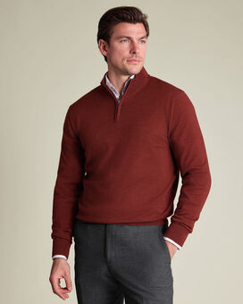 Pure Merino Zip Neck Jumper - Tealhttps://www.charlestyrwhitt.com/on/demandware.static/-/Sites-ctshirts-master/default/dw90cea8f5/hi-res/KNM0010TEL_MODEL_FRONT.jpgKNM0010TELKnown as nature's performance fabric, Merino is comfortably breathable and temperature regulating - and has the softest handle of any knitwear. We've gently washed it for an even silkier finish, resulting in a supple jumper that subtly moulds itself to your body. The styling is simple, letting the fine fibres take centre stage. There's traditional ribbing on the cuffs and hem and the understated neckline means this jumper looks superb when worn with a button-down shirt.https://www.charlestyrwhitt.com/intl/pure-merino-zip-neck-jumper---teal/KNM0010TEL.htmlGBP49.95InStock516