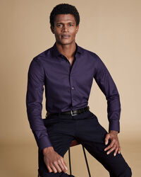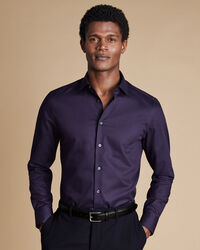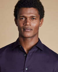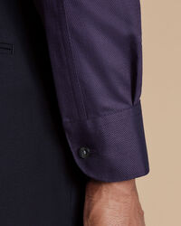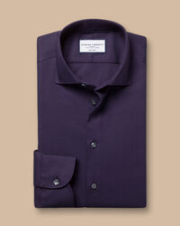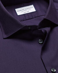 Semi-Cutaway Collar Non-Iron Stretch Texture Shirt - Purplehttps://www.charlestyrwhitt.com/on/demandware.static/-/Sites-ctshirts-master/default/dw9a71d174/hi-res/FOB0765PUR_COLLAR_DETAIL.jpgFOB0765PURThis mid-weight staple shirt is versatile across the seasons, and different occasions too. Its semi-cutaway collar gives it a contemporary feel, while the non-iron finish adds a smart touch – so it's easy to dress up or down.