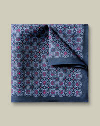 details about product: Silk Geo Print Pocket Square - Navy & Dark Pink
