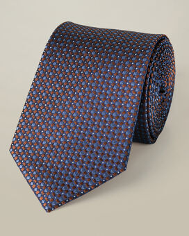 Silk Tie - Chocolate Brown & Steel Bluehttps://www.charlestyrwhitt.com/on/demandware.static/-/Sites-ctshirts-master/default/dw77570c4e/hi-res/TIC2107CHC_ROLLED.jpgTIC2107CHCTo keep the vivid design adorning this silk tie in tip-top shape, we added a clever stain-resistant finish that repels liquid. We've stitched in a concealed keeper loop to hold the tail in place too. Plus, a second secret loop allows the fabric to fall back into shape after knotting.https://www.charlestyrwhitt.com/intl/silk-tie---chocolate-brown-%26-steel-blue/TIC2107CHC.htmlGBP19.95InStock44