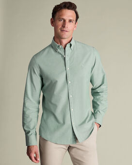 Stretch Washed Oxford Shirt - Light Green https://www.charlestyrwhitt.com/on/demandware.static/-/Sites-ctshirts-master/default/dwbc53ebdc/hi-res/CSC0023LGN_MODEL_UNTUCKED.jpg CSC0023LGN This pure cotton shirt has plenty of natural stretch and flexibility – made for work-to-play comfort. We gave the classic Oxford weave a garment wash, providing you with the same supreme softness while being that bit kinder to the planet. Casual touches like the button-down collar give the formal silhouette a wear-me-anywhere versatility. Just pair it with tonal chinos for a suave look. https://www.charlestyrwhitt.com/intl/stretch-washed-oxford-shirt---light-green/CSC0023LGN.html GBP 64.95 InStock 4.60 11