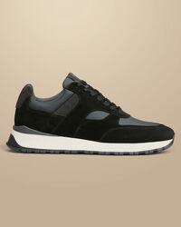 Suede and Grey Textile Trainer - Black & Grey https://www.charlestyrwhitt.com/on/demandware.static/-/Sites-ctshirts-master/default/dw44588f94/hi-res/SHW0254KGY_SIDE.jpg SHW0254KGY Welcome weekend comfort into your footwear collection with these trainers. The lightweight construction and rubber sole reduces foot fatigue, while the padded Collar and insock provide additional support with every step. The upper is crafted from soft leather with a lining to match. The result? A hard-wearing, versatile shoe for running errands or simply adding a casual touch to your outfit. https://www.charlestyrwhitt.com/intl/suede-and-grey-textile-trainer---black-%26-grey/SHW0254KGY.html GBP 79.95 OutOfStock 4.70 29