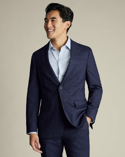 Check Suit Jacket - Ink Bluehttps://www.charlestyrwhitt.com/on/demandware.static/-/Sites-ctshirts-master/default/dw9b6e9b3e/hi-res/TAILORING/CT/SUB0602NKB_JACKET_FRONT.jpgSUB0602NKBThis jacket is ideal for the office and special occasions – worn as part of a formal suit, or paired with your smarter outfits. The added stretch and crease recovery ensures maximum comfort. It features a canvas chest piece for a well-defined fit. As for the details, we’ve added a classic Bengal stripe lining, and intricate AMF stitching.https://www.charlestyrwhitt.com/nl/en_NL/check-suit-jacket---ink-blue/SUB0602NKB.htmlEUR169.00InStock4.7026