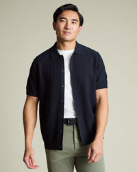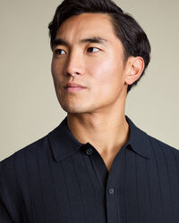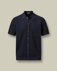 Cotton Stripe Texture Knitted Polo – Navyhttps://www.charlestyrwhitt.com/on/demandware.static/-/Sites-ctshirts-master/default/dwd2d8ef80/hi-res/KNT0018NAV_MODEL_FRONT_01.jpgKNT0018NAVCrafted from pure cotton, this polo is naturally breathable and temperature regulating, then garment washed for extra softness. The mid-weight knit feels comfortable all day and has the substance to layer easily under a blazer. A button-through placket gives the style a smarter edge, setting it apart from the usual polo. With a structured collar and ribbed trims that keep their shape, it’s sharp, practical, and built for repeat wear.https://www.charlestyrwhitt.com/nl/en_NL/cotton-stripe-texture-knitted-polo-%E2%80%93-navy/KNT0018NAV.htmlEUR89.95InStock00