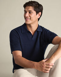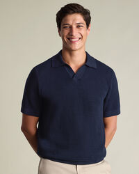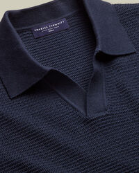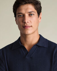 Cotton Texture Trophy Neck Knitted Polo – Navyhttps://www.charlestyrwhitt.com/on/demandware.static/-/Sites-ctshirts-master/default/dw2dd194f0/KNT/KNT0015NAV/KNT0015NAV_MODEL_FRONT_01.jpgKNT0015NAVWe’ve crafted this polo from 100% cotton with a textured knit that adds depth and character, while remaining naturally breathable. The garment-washed finish gives it an exceptionally soft feel, while the mid-weight fabric keeps you comfortable all day long. It's designed with a distinctive trophy neck for a refined twist on a casual classic. Style it with chinos or shorts for an effortless smart-casual look.https://www.charlestyrwhitt.com/nl/en_NL/cotton-texture-trophy-neck-knitted-polo-%E2%80%93-navy/KNT0015NAV.htmlEUR89.95InStock00
