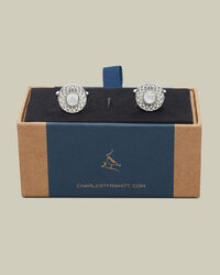 details about product: Mother of Pearl Round Cufflinks - Silver
