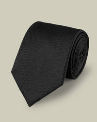 Silk Textured Tie - Blackhttps://www.charlestyrwhitt.com/on/demandware.static/-/Sites-ctshirts-master/default/dwdb01ba3d/hi-res/TIES/CT/TIC2020BLK_ROLLED.jpgTIC2111BLKWe've treated our textured tie with a high-tech finish so liquid simply rolls right off, minimising staining. Great news for those breakfast meetings and quick coffees on the train. The supple texture of the silk ensures the tie drapes superbly. We've taken its impeccable look to the next level by adding a hidden loop that holds the tail neatly in place. This hand-finished style has an 8 cm blade, so it works with most collars.https://www.charlestyrwhitt.com/nl/en_NL/silk-textured-tie---black/TIC2111BLK.htmlEUR39.95InStock00