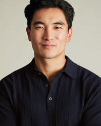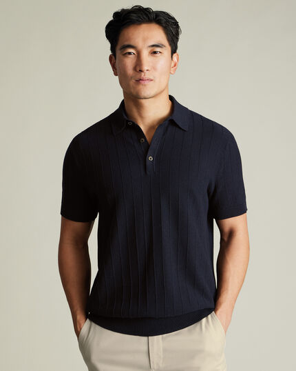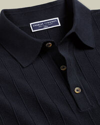 Gebreide Polo Van Katoen Met Textuur - Marineblauwhttps://www.charlestyrwhitt.com/on/demandware.static/-/Sites-ctshirts-master/default/dwe7706977/hi-res/CT/KNT0006NAV_MODEL_FRONT.jpgKNT0006NAVIt’s crafted from naturally bio-degradable mid-weight cotton, so it’s ideal for wearing season after season. Look closely and you’ll spot a subtle striped pattern through the fabric.