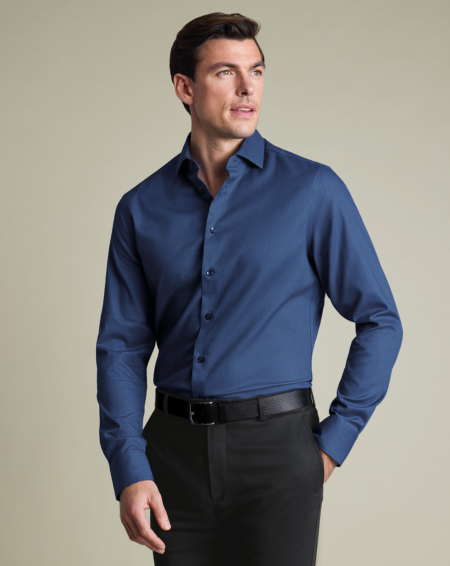 Introducing our new Shirt of the Season! Crafted from pure cotton with a non-iron finish and a hint of stretch, our new Greenwich Weave will keep you looking sharp all day.