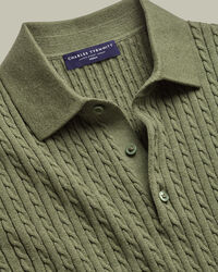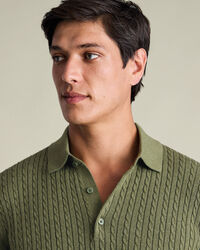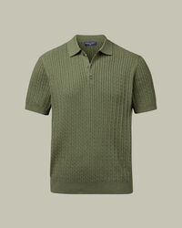 Katoenen Kabelgebreide Polo – Saliegroenhttps://www.charlestyrwhitt.com/on/demandware.static/-/Sites-ctshirts-master/default/dw9b065350/KNT/KNT0014SGE/KNT0014SGE_MODEL_FRONT_01.jpgKNT0014SGEA fresh take on the classic polo, this style is garment washed for softness and feels naturally cool against the skin. The mid-weight handle makes it easy to wear on its own during the day or layered neatly under tailoring. Considered finishing details elevate the look: a three-button placket with dyed-to-match buttons, ribbed trims that keep their shape, and a structured collar that keeps the look sharp.https://www.charlestyrwhitt.com/nl/nl_NL/katoenen-kabelgebreide-polo-%E2%80%93-saliegroen/KNT0014SGE.htmlEUR89.95InStock51
