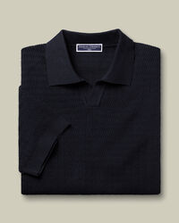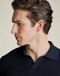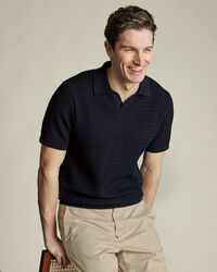 Katoenen Polo Met Gewoven - Marineblauwhttps://www.charlestyrwhitt.com/on/demandware.static/-/Sites-ctshirts-master/default/dw38b0f8ec/hi-res/CT/KNT0005NAV_MODEL_FRONT.jpgKNT0005NAVLook effortlessly polished during the transitional season in this short-sleeved polo.