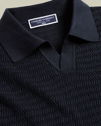 This versatile knit is garment-washed, making it feel supremely soft and comfortable. It's polo-style trophy neck is perfect for a smart-casual appearance. The mid-weight, naturally biodegradable fabric is understated, highlighting the luxurious texture created by the all-over zig-zag pattern. Classic ribbing on the cuffs and hem adds extra warmth while ensuring a neat finish.https://www.charlestyrwhitt.com/nl/nl_NL/katoenen-polo-met-gewoven---marineblauw/KNT0005NAV.htmlEUR49.95InStock41