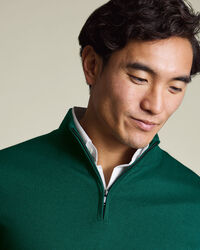 Trui Met Ritssluiting En Ritskraag Van Pure Merinowol – Groenhttps://www.charlestyrwhitt.com/on/demandware.static/-/Sites-ctshirts-master/default/dw485716c7/KNM/KNM0015BGN/KNM0015BGN_MODEL_FRONT_01.jpgKNM0015BGNKnown as nature's performance fabric, Merino is comfortably breathable and temperature regulating - and has the softest handle of any knitwear. We've gently washed it for an even silkier finish, resulting in a supple jumper that subtly moulds itself to your body. The styling is simple, letting the fine fibres take centre stage. There's traditional ribbing on the cuffs and hem and the understated neckline means this jumper looks superb when worn with a button-down shirt.https://www.charlestyrwhitt.com/nl/nl_NL/trui-met-ritssluiting-en-ritskraag-van-pure-merinowol-%E2%80%93-groen/KNM0015BGN.htmlEUR99.95InStock00