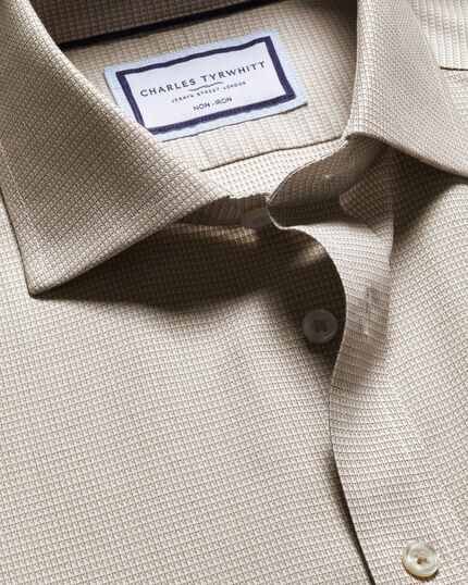 Crafted from 100% mid-weight cotton, this twill-weave shirt is comfortable and breathable all year round. Its non-iron finish makes it a fuss-free ready-to-wear piece, while the split-back yoke construction ensures freedom of movement. A firm Tyrwhitt favourite, this twill shirt features a distinctive stripe pattern with a silky, smooth finish. Complimentary brass stays complete the sophisticated look by keeping your collar neatly in place.